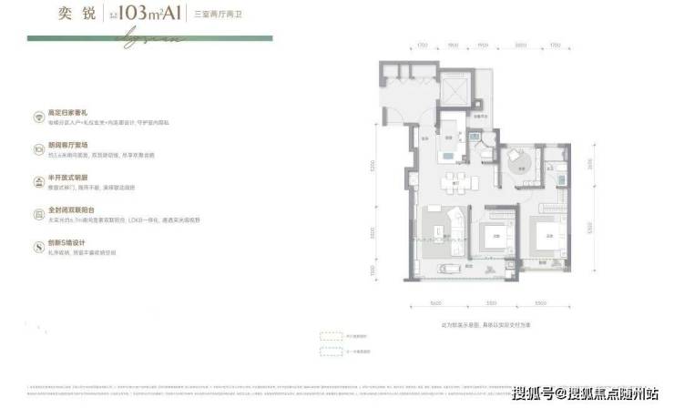 • 类方厅阔境:客厅餐厅厨房一体化设计,营造开阔通透的空间感,提升居住舒适度
