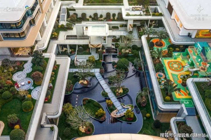 项目萃取精英生活底蕴,打造一座悬浮于都市之上的立体生态绿洲,「一轴·五境·七景」的叙事性布局,涵盖下沉庭院、叠瀑景观、花园水池、阳光草坪等沉浸式景观节点。