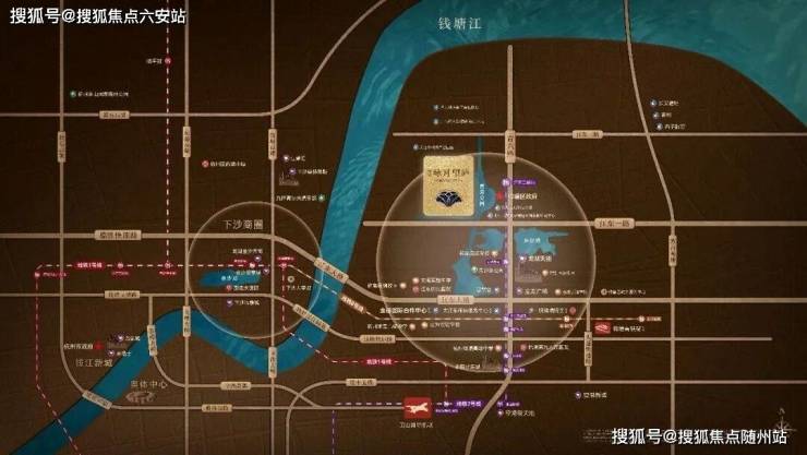 不止,还有近在身旁的城市配套。从咏月望庐出发,直线不到一公里,就是更贴近城市的东沙湖公园,江东天街、宝龙广场、在建的浙一钱塘院区都在附近;往西直线约600米是7号线江东二路站,能一路直达奥体、西湖。