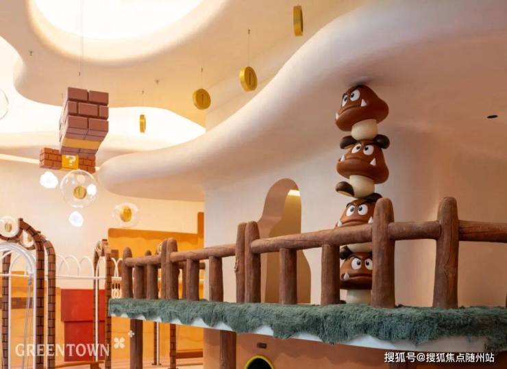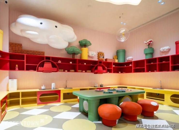 西安润百合的马里奥主题乐园,是绿城通过专业厂家特意定制的,比很多专业游乐场还要有趣。上下两层立体布局,高饱和度的色彩、丰富的攀爬、滑梯体验与体能拓展,让孩子在游戏中锻炼体能,也在探索中认识世界。