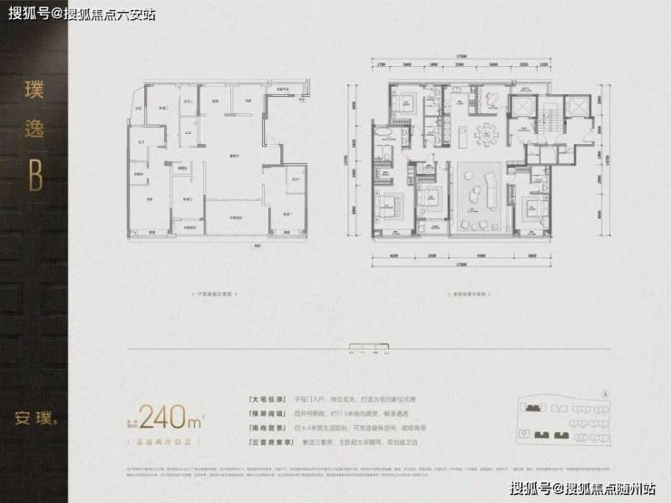 尤为值得一提的是主打户型——约240㎡南厅户型。该户型分布于12-16层的低密楼栋,享有接近一梯一户的尊贵体验,综合得房率约达90%以上。