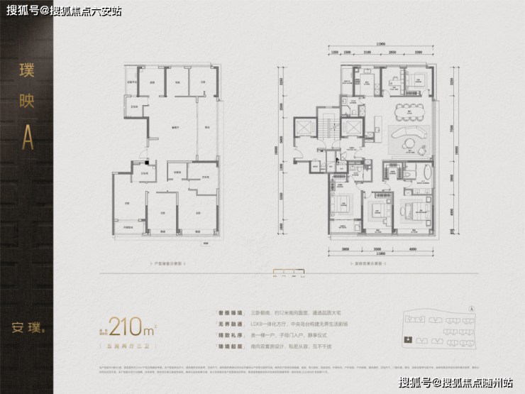 在户型设计上,安璞同样表现出众。约210㎡户型为五房三卫,其余户型均配备四卫,并实现三间套房布局,极大提升了居住的私密性与舒适度。