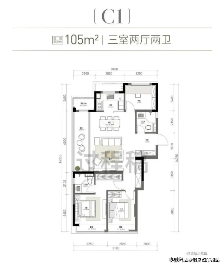 · 南向总面宽预计达约11.5米,尺度堪比很多110方以上户型