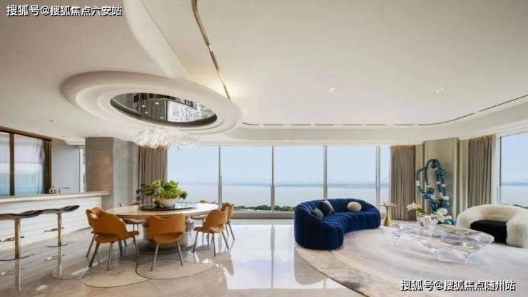 户型内部由邱德光定制室内空间,玄关渐变曲面艺术玻璃、客厅弧形吊顶与奢石拼花等细节,体现了设计师对品质的追求。3.6米的层高部分区域搭配恒温恒湿系统,打破了传统高层的压抑感。