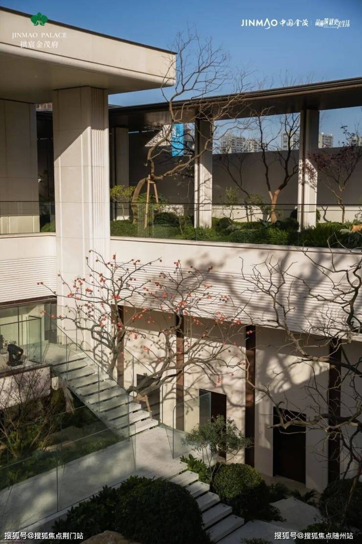 长廊转角处,不经意间,目光就会邂逅冠幅8米多的顶级红梅树王,又或是太行金石材切片的天然画图。这种高差主导的场景序列,将豪宅体验从二维推至三维。