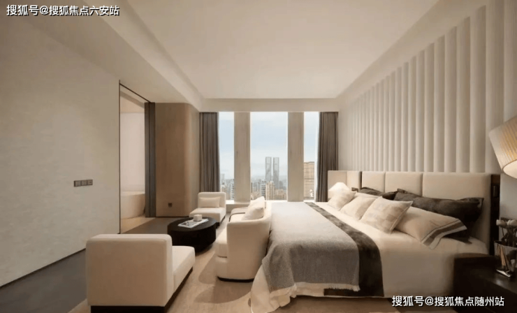 总统式套房:主卧配备独立家政间、衣帽间及干湿分离卫浴,部分户型设2㎡安全屋及私人观景露台。