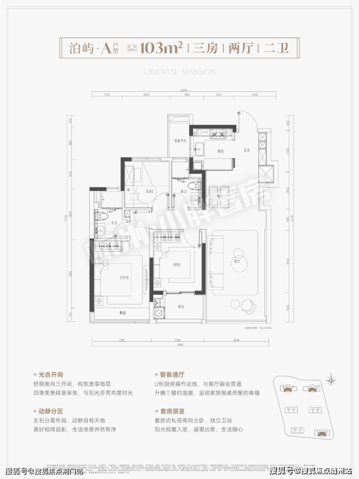 三开间朝南、动静分区,主卧套房设计,每一点格局设计都是非常合理且人性化。