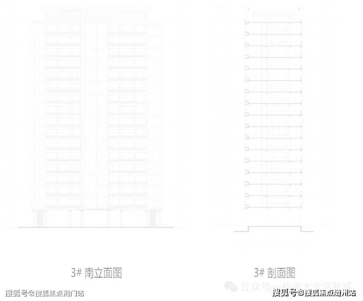 从剖面图来看,架空层高达5米,层高却只有3米。建筑外观和色调,类似如正在建设中的滨江映运轩项目。