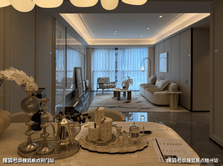 餐客厅采用LDKB一体化设计,连通封闭阳台形成约55㎡的“无界方厅”,空间感强,功能灵活。