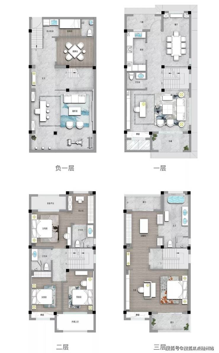 主力户型:160-210㎡(地上三层+全明地下室),首层赠60-150㎡私属花园,顶层配置星空露台