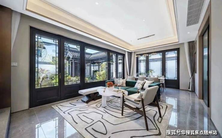 打造移步换景的江南园林雅境,呈现“堂、巷、院、宅”四进式礼序院落。,将千年东方礼序融于一院。结合框景、对景、漏景等丰富的造景设计,营造“移步换景、如在画中”之感,汇集杭州桃李春风、安吉天使小镇等蓝城经典中式合院营造经验之大成,专为当代名人雅士打造有天有地有花园的江南院落生活。