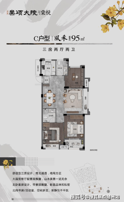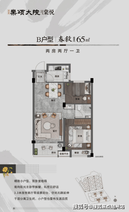 项目定位:临安滨湖新城唯一在售低密新中式合院社区,占地约1.7万㎡,容积率1.1,绿化率25%,规划4幢六层电梯洋房(92户)及41户新中式合院,主推建面约65-190㎡户型,总价65万起,现房交付。