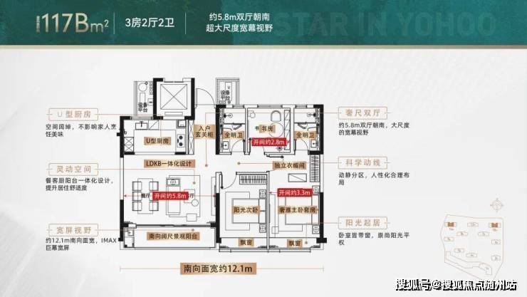 约12.1米南向面宽,三开间朝南,搭配LDKB一体化边厅设计,无界拓展家庭互动场景