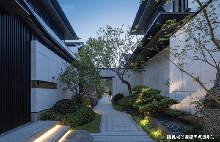 项目汲取传统中式合院存在白墙不耐脏、开窗小、采光不佳等产品硬伤经验,在立面上运用了大量的石材、铝板及通透的玻璃栏板等,以现代手法转译宋代美学,且保留了中式合院的温润质感。