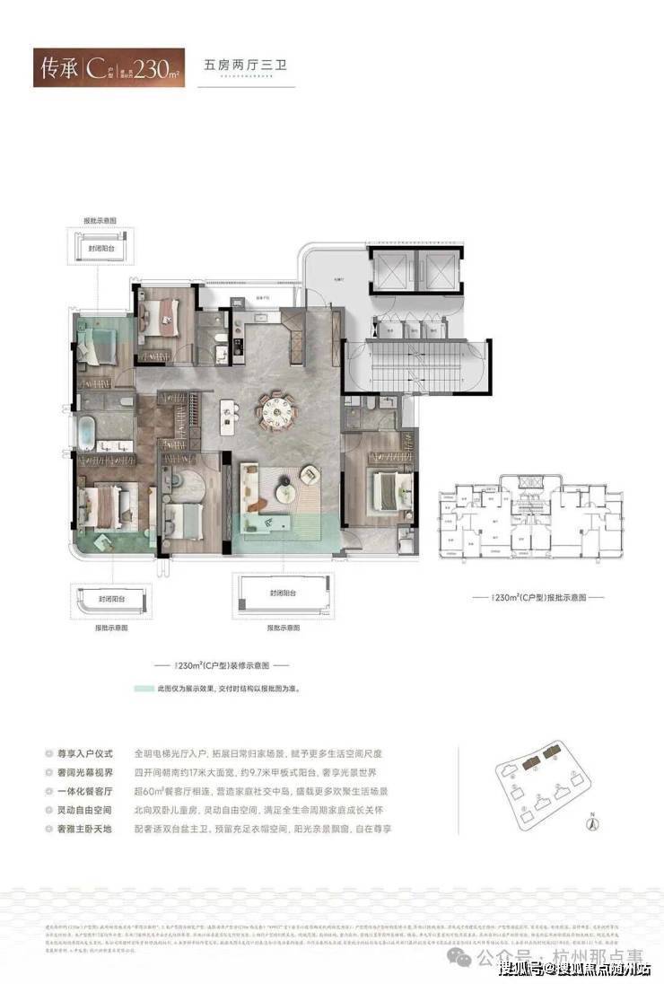 独立电梯厅入户;入户玄关;餐厅预留餐边柜;餐客面积约44㎡(锦上万象府186方餐客厅面积42方,元起观潮225方餐客厅面积才48方)