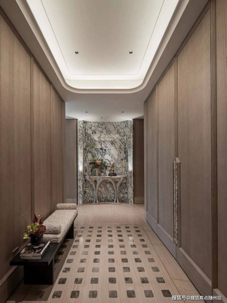 一梯一户的私享电梯厅,大面奢石的铺排,或是暖色调木饰面的大范围运用,每一寸空间都会让你感受到仪式感和温度。