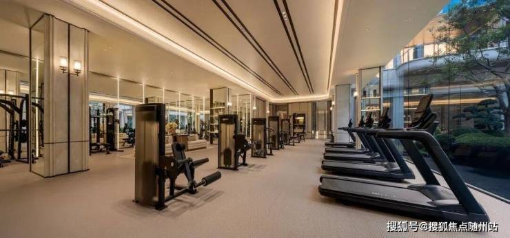 有超300方的跃澜 FIT CLUB 健身房,里面配的都是全球顶奢运动器械品牌“必确PRECOR”的器械,美国进口,单台跑步机的价格要近10万。整个场域跑步机、椭圆机、史密斯机、网红爬楼机……力量区、有氧区、器械区一应俱全,器械采购成本超百万。