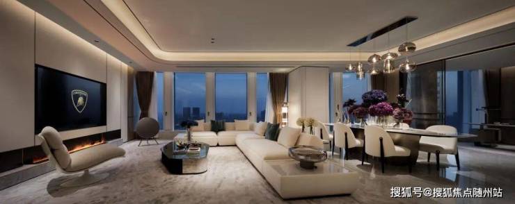 约420㎡“超跑”四房户型,更拥有约14米的公区弧形巨幕面宽,演绎兰博基尼顶级超跑“闪电”的极致型格。