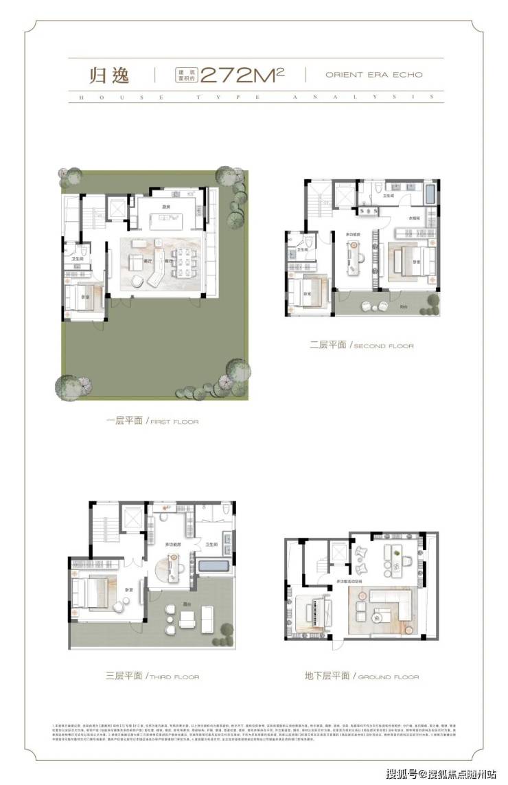 • 院墅(203-272㎡):前庭后院+下沉式庭院,6米挑高地下室可改造私人会所,四套房设计满足全龄需求。