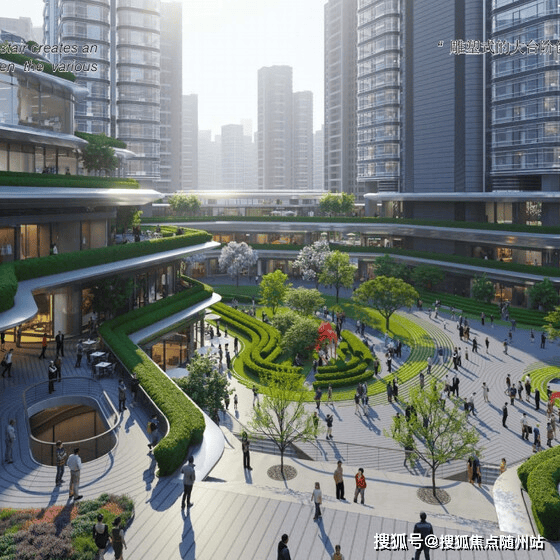 钱塘江2.4公里滨水景观带,社区14000㎡中央园林+屋顶星空花园,雨中“梦露裙摆式”大雨棚(全球最大单幅水晶玻璃)。