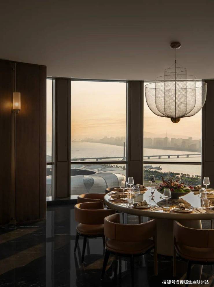 携手国际设计团队GP、HPP、安琦道尔,以“北斗七星”为灵感,外立面采用全玻璃幕墙+香槟金铝板,打造建面约430-875㎡天际大平层。4.3米层高、270°环幕采光,得房率85%-86%(含赠送面积),获评“中国建筑工程装饰奖”。