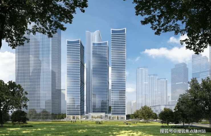 项目由四栋地标建筑构成,一栋249.98米办公塔楼,一栋约175米、两栋约190米大平层塔楼,外加商业裙房及街区式商业空间组成,形成集居住、办公、商业与公共活动于一体的高密度城市综合体。整体规划在强化CBD功能活力的同时,通过清晰的空间层级与多元业态组合,赋予区域鲜明而持久的城市身份。