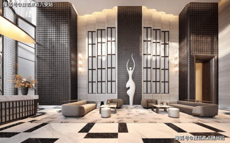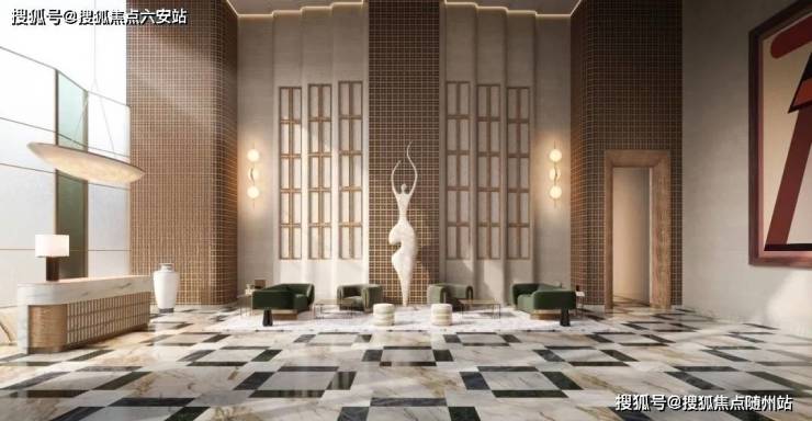 而摩纳哥的奢华,则在「壹云32品」大平层中得到了另一种形式的演绎。从入户大堂的那一刻起,就能感受到那份与众不同的尊贵。约9.9米挑高的空间,搭配着灵感女神的艺术雕塑,让人瞬间被一种高雅而神秘的气息所包围。大堂内各种珍稀石材与精致木格元素的巧妙结合,营造出一种既古典又现代的艺术氛围。