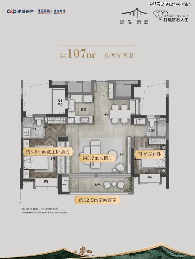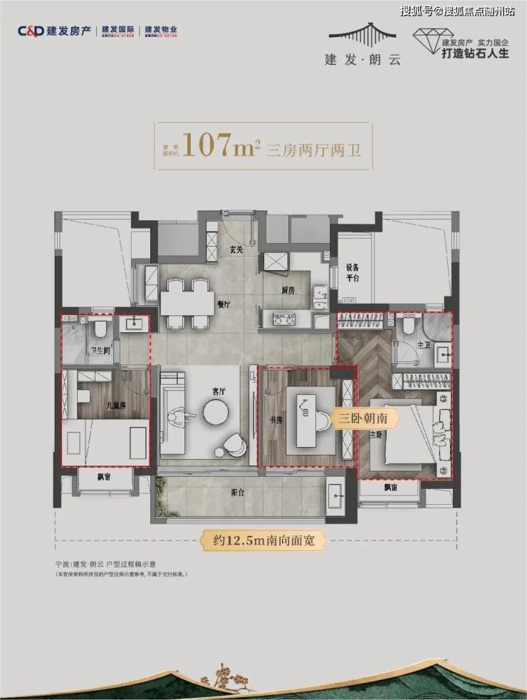 宁波|建发·朗云建面约107㎡二房/三房户型