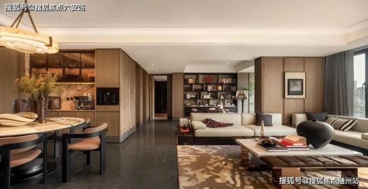融合东西方美学,暖木色的饰面撞上天然石纹,搭配云石吊灯等质感单品,既藏着东方的含蓄,又透着西方的简约。