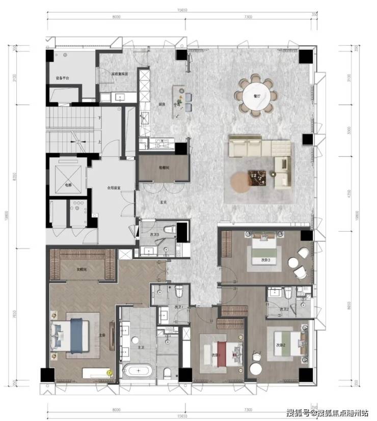 户型设计:主力户型为315-320㎡精装大平层,建面约41-50层江景新品,层高3.8米,LDK横厅达80㎡,主卧套房配置双衣帽间、270°景观视野,得房率高达87%-90%。