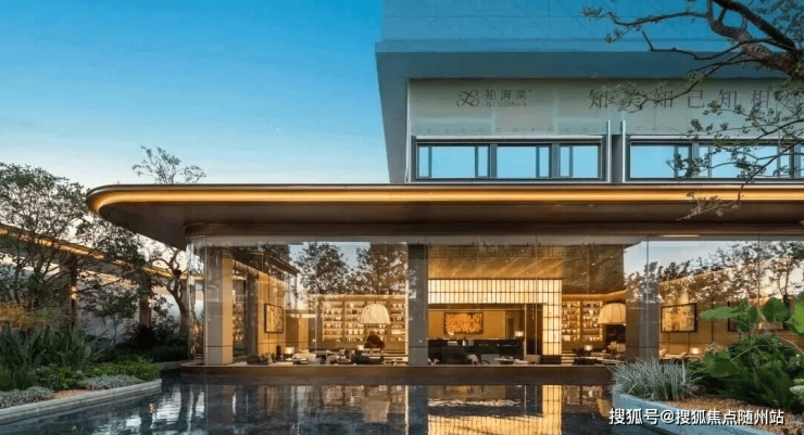 步入门庭,立体山水庭院「知・流霞」如画卷般骤然铺展,依托约3.2米的抬地高差,逐级而上。空中悬浮的「知・印月」浮岛客厅,轻巧地倒影在波光粼粼的潋滟汐庭之中,与前厅交相辉映,营造出光影交织的对话空间,让每一次的相遇都在自然中绽放。
