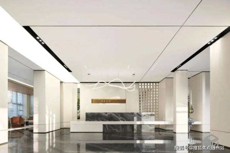 主入口进入小区,映入眼帘的是结合机动车坡道设置的公共大堂。这里不仅是归家的第一道风景线,更是通过合理的空间规划,成为居民自然聚会、邻里交流的温馨场所,瞬间让大家感受到项目对社区氛围营造的用心。大堂入口拥水而居,灵动自然的曲线构成高低起伏的山景层次,伴随着潺潺跌水,让回家充满了仪式感。