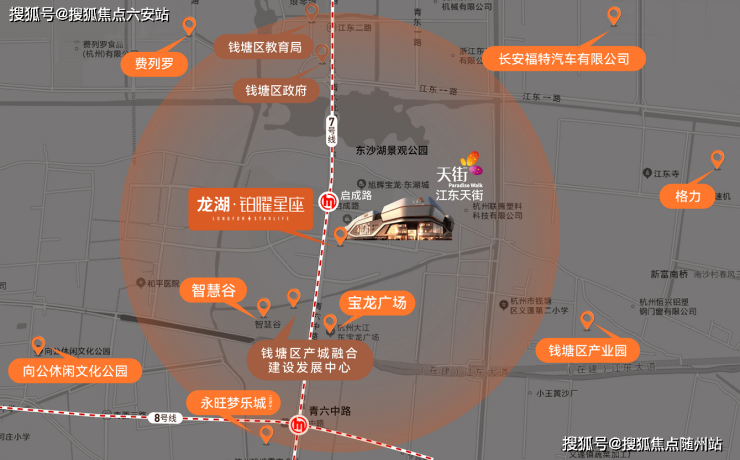 龙湖铂曜星座的区位价值,首先体现在“立体交通网络”的覆盖。项目落子大江东板块2.0核芯,这里是杭州“城市东扩”的关键节点,也是“江海之城”36.93平方公里规划的核心区,产业、商业、生态资源高度聚合。