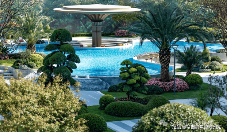 四面铝板的立面,南向是大面积的玻璃,转角处做了柔和的弧形处理,简洁高级,在区域界面中辨识度十足;园区核心的异形蓝宝石水池,搭配热带风情植被,营造出度假般的归家体验;超3000㎡的会所空间,配备了恒温泳池和斥资百万打造的健身房,让高端生活方式成为日常 。