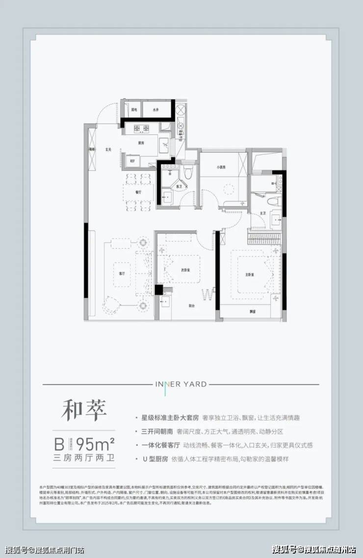 建面约95㎡三室两厅两卫的中间套,三开间朝南,总面宽接近9.8米,餐客厅一体化设计提高了空间利用率,整个竖厅非常阔绰,属于同面积段户型中的稀有物种。售楼热线:☎ 400 832 8823「售楼处」☎〢🔻已认证〢◆🔻