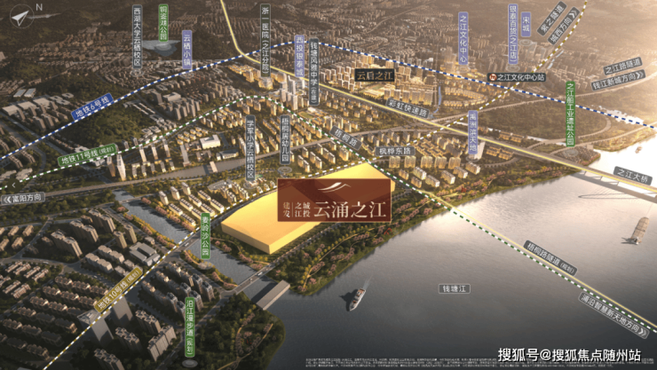建发云涌之江位于杭州市西湖区之江板块核心,地理位置优越,紧邻钱塘江,直线距离仅500米。项目周边环境优美,拥有约10米高的麦岭沙公园和在建中的沿江漫步道,为居民提供了丰富的休闲娱乐空间。