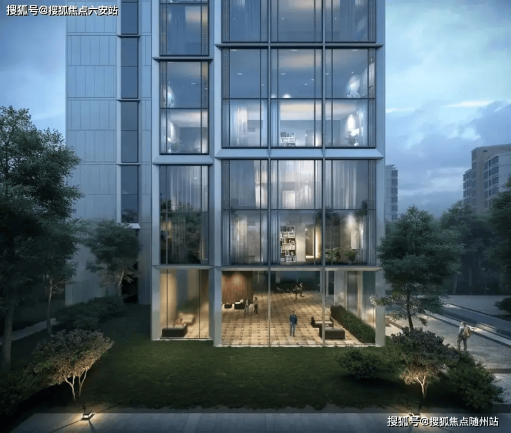 建筑风格:采用现代简约风格,立面以铝板和窗墙系统为主,南立面玻璃面占比近90%,犹如银瀑倾泻,展现现代极简审美。