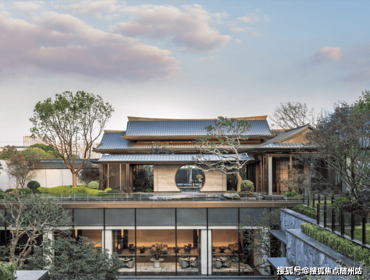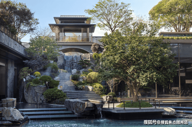 写仿西湖十景,取意郭庄形制,引湖入园、循序渐进,复现九溪烟树况味;景观中轴、风雨连廊、花园景致等将建筑与园林相融一起,依循自然缓坡地势,营造意韵悠扬的禅境园林,呈现小中见大、园中有园、景中有景、曲径通幽之境,将西湖的精致山水写仿入园,于方寸之间纳藏万千气象。