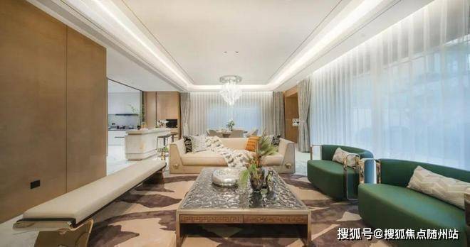 随处可见极具年代感的红梅、贵妃罗汉松、羽毛枫和黑松,样板间里还有意大利顶级鱼肚白、宝格丽石材、雀眼木……那种高奢感、传世感皆不彰自显,让一众江景大平层都黯然失色。独门独户 一宅一姓,尊享专属的独立入户礼遇,精心构筑起一方远离尘嚣、静谧而私密的雅致天地。一层一境宴·家族场域奢阔横厅与南向私享天地无界相连,匹配大家族的奢居气场。