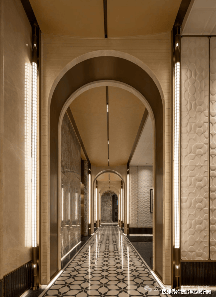你根本意识不到这是架空层,层高约5米,做了一个又一个的拱券,每一道拱门后,都是一个个精致的会客空间,每一个的风格都不太一样。