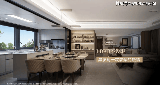 洋房建面约118方四房两卫户型,采用社交中岛LDKB一体化设计,创造家庭欢聚的“剧场”。