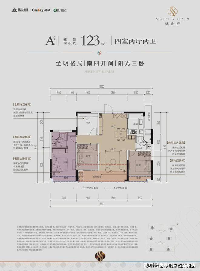 项目主力户型涵盖建面约123㎡、128㎡、139㎡、173㎡四款面积段四房户型,所有户型均以气派通厅、奢雅套房、阔朗阳台等多元场景,实现大尺度引光纳景,构建出通透舒展的大宅生活场景,契合未来精英家庭的生活品质与成长需求。