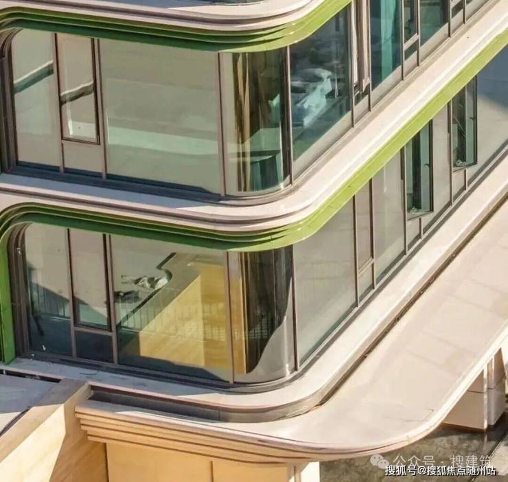 项目提取早春龙井绿芽的柔和曲线,在大面积玻璃和铝板中以独创的冰裂青瓷陶棍点缀,具现了独特的“钱塘春芽”美学意象,将现代审美与古典韵味有机结合。