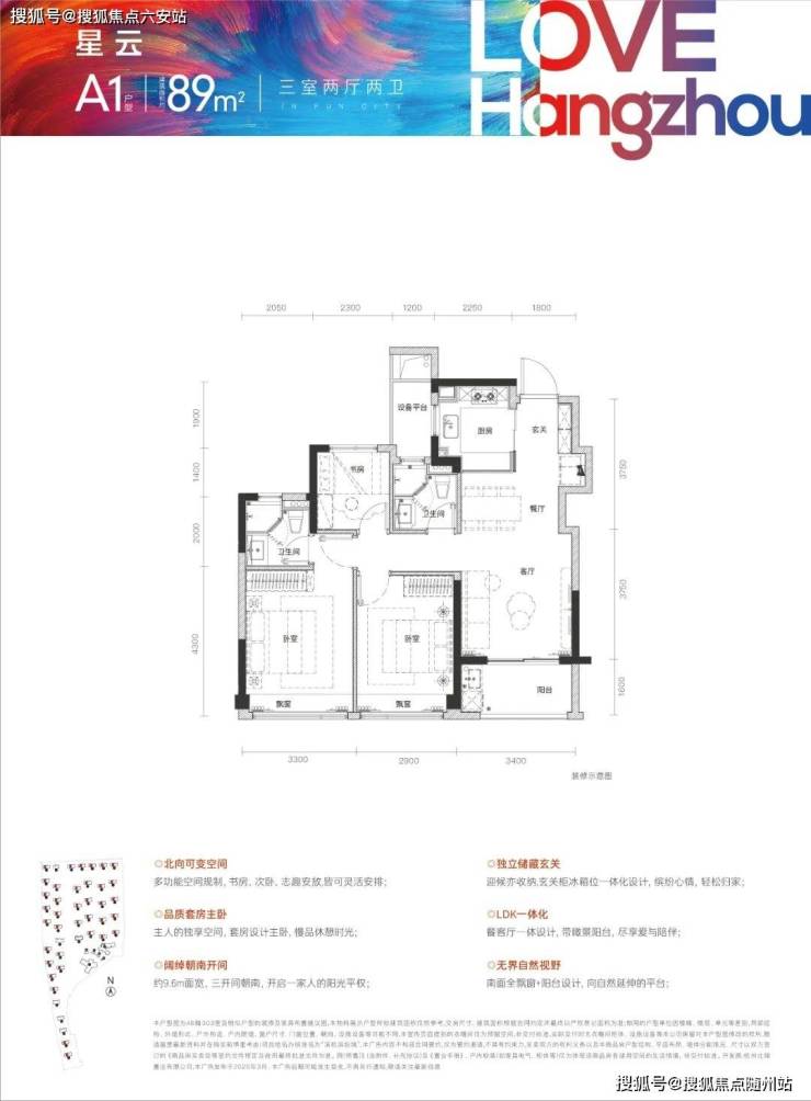 建面约89㎡三房两卫户型,一直是明星爆款户型,阔绰朝南开间约9.6米面宽,三开间朝南,独立储藏玄关;玄关柜冰箱位一体化设计,无界自然视,南面全飘窗+阳台设计。