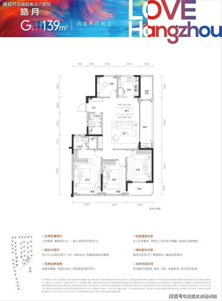 建面约139㎡大四房首次绽放。270°环幕瞰景,双阳台设计,让空间向风景打开;三卧朝南,演绎一家人的阳光平权主义。更有大阳台宽厅,安放家庭活动时光,爱和陪伴随时幸福上演。
