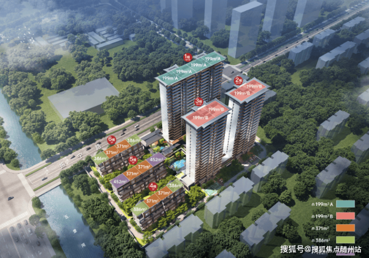 高层产品:3幢20层高层住宅,主力户型建面约199㎡,采用建发标志性新中式风格,包含飞檐设计及新中式园林元素。