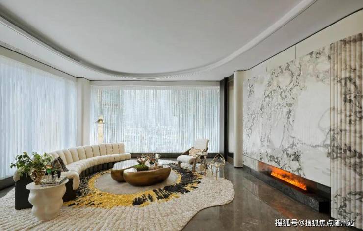 而梁景华主笔的「流金385」则通过艺术玻璃、水墨色调的潘多拉大理石和弧线造型木饰面,带来自然美学的将空间韵味,步入其中,即刻感受到无处不在的质朴与温润。