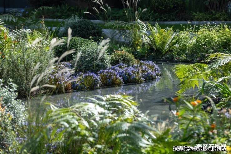 其中东区景观通过线性营造手法打造景观层次,多以柔美松弛的“水曲线”,将不同主题的架空层和户外空间串联起来,建筑与景观之间,形成一个自然丰富、趣味横生的绿意空间,处处体现出恰到好处的生活感。
