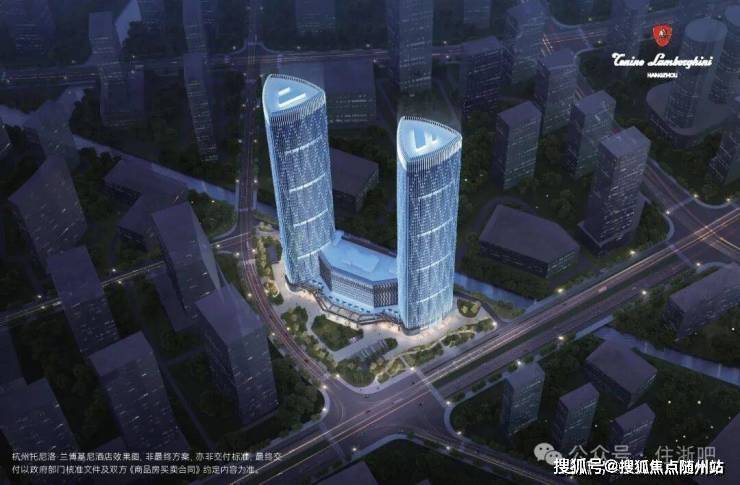 【建筑规划】:T1、T2为250米双塔楼(60层,T1写字楼、T2杭州托尼洛·兰博基尼行政公寓)、T3裙楼(12 层,杭州托尼洛·兰博基尼酒店)