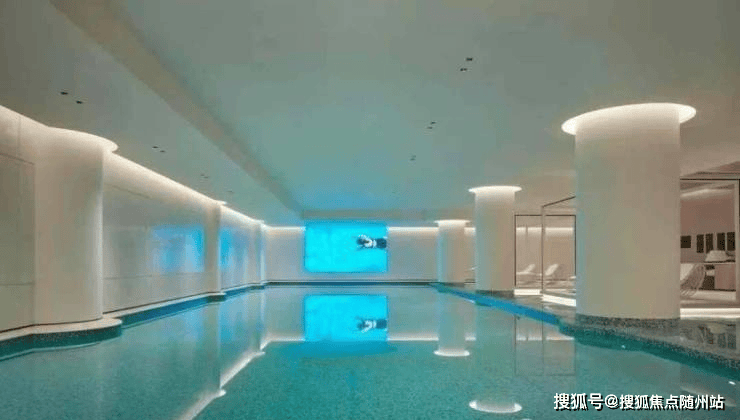 那就是奥体飞虹路站旁,约250米高的“小杭州之门”中,由浙江新世界开发的瑰郦中心L-Villa。酒店的体量更大,足足3.7万方的城市度假型酒店空间里,装载了健身房、双泳池、餐厅、酒廊等一众高端业态,而且每一项都精准击中了“爽点”